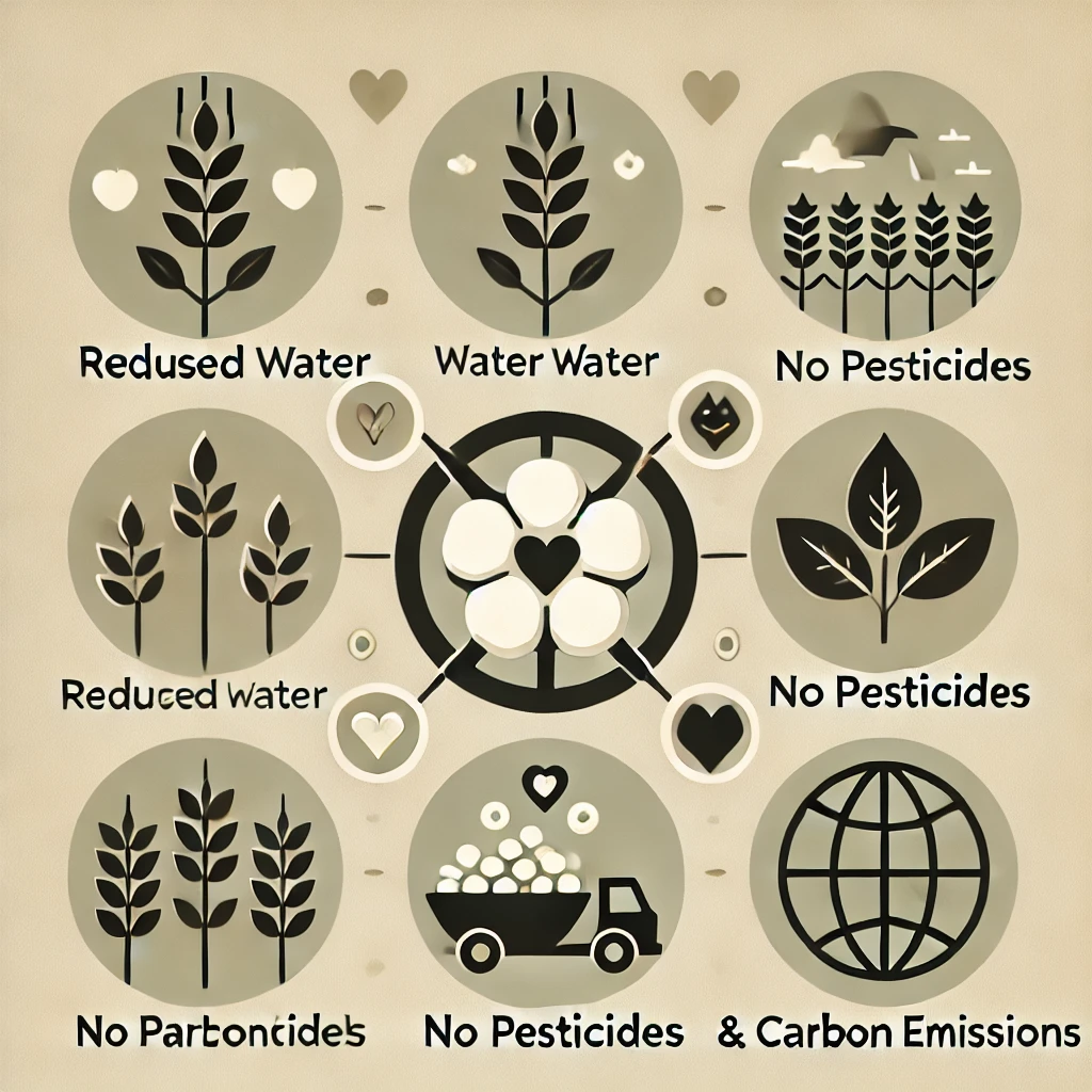 - Organic Cotton: No synthetic chemicals, promoting soil health and biodiversity.