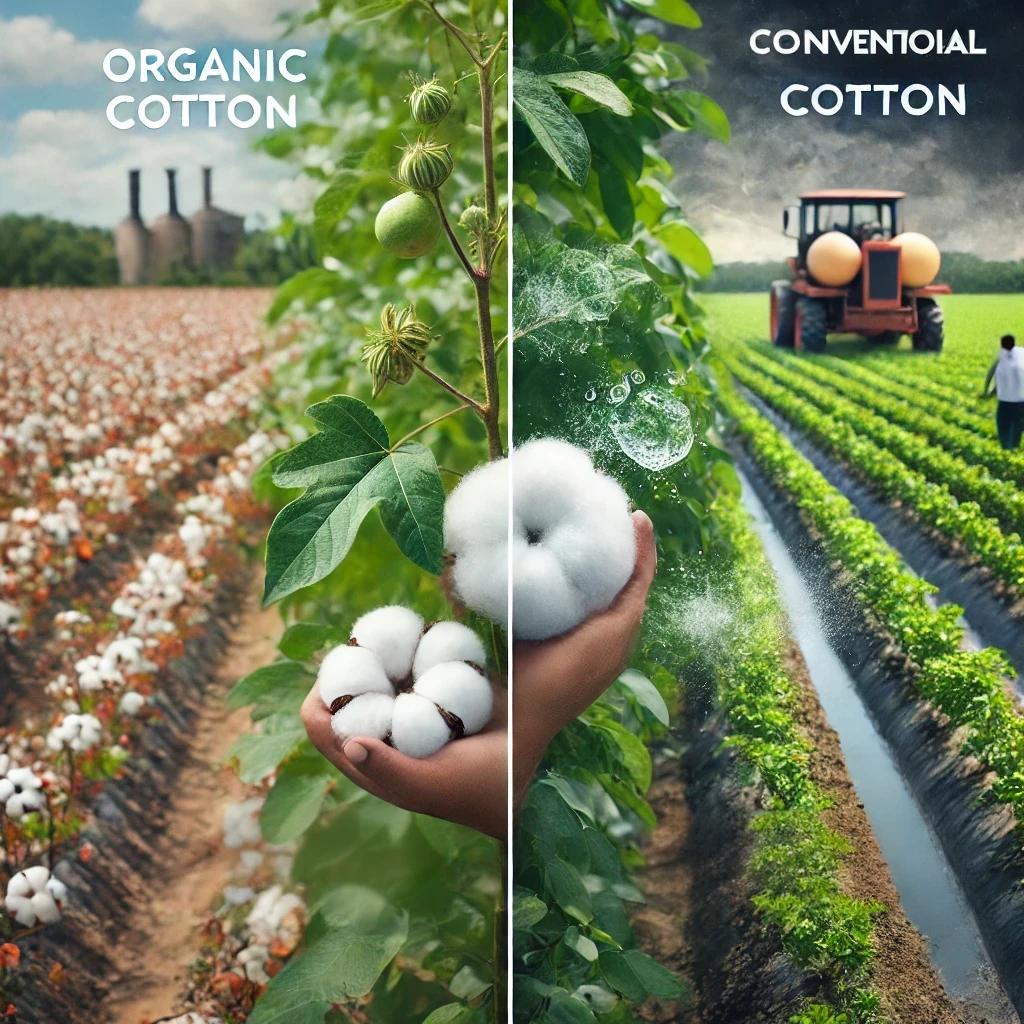 - Conventional Cotton: Heavy use of synthetic pesticides, herbicides, and fertilizers.